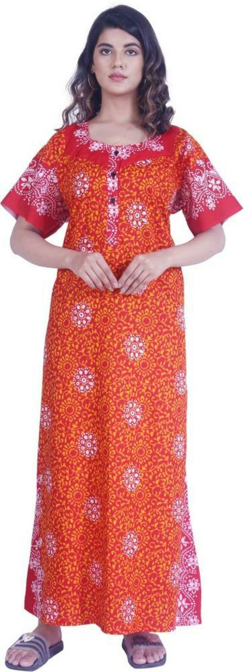 MKF Women Red Printed Cotton Nighty - L