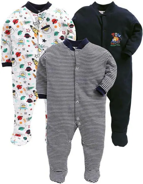 MM IMPEX Baby Boys and Girls Black Striped, Printed, Solid Cotton Blend Pack of 3 Romper 9-12 MONTHS| Rompers |Sleepsuits | Jumpsuit |Body suits