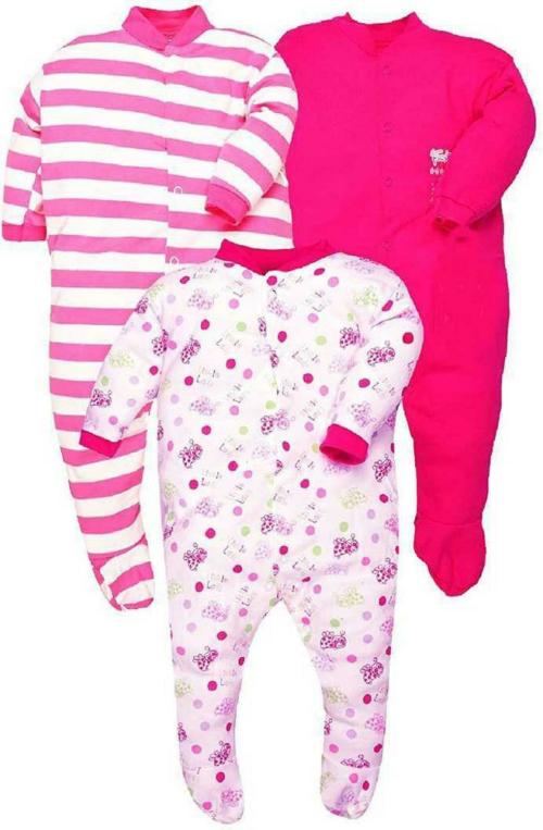 MM IMPEX Baby Boys and Girls Rani Pink Self Design Cotton Blend (pack of 3) Rompers, 3 - 6 Months