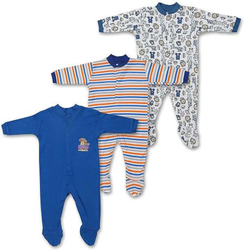 MM IMPEX Baby Boys and Girls Royal Blue Striped, Printed Cotton Blend, Hosiery Pack of 3 Romper 0-3 MONTHS| Rompers |Sleepsuits | Jumpsuit |Body suits