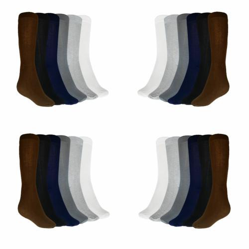 MUKHAKSH (Pack of 12 Pairs = 24 Socks) Men Boys Fine Cotton Six Different colours Long Calf Socks
