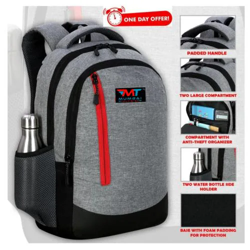 MUMBAI TOURISTERLarge 33 L Laptop Backpack 33L Water Resistant Bag/Backpack for Laptop/MacBook up to 15.6 inches for Office/Travel/College for Men and Women with 2 compartments (Navy Blue) (Grey)