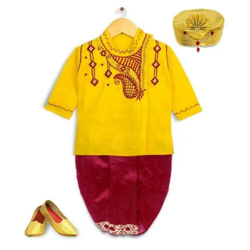 mustmom Rice Ceremony Ethnic Dhoti Kurta 1 kurta dhoti cap and 1 pair of shoe Pure Cotton