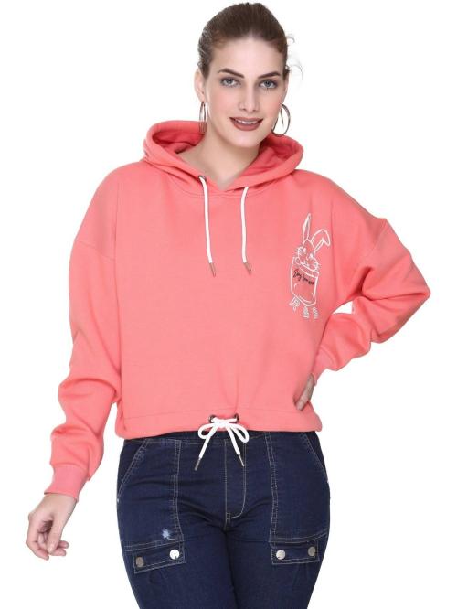 MY PRINCESS GIRL Women Peach Printed Cotton Fleece Hooded Neck And Full Sleeve Hooded Sweatshirt (XL)