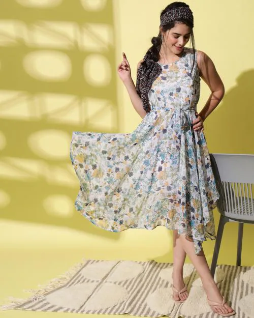 My Swag Women's Blue Color Floral Print Asymmetric High Low Dress
