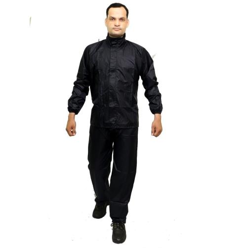 N G Products Mens Rainwear Mens Raincoat Set Coat with Pant Waterproof with Adjustable Hood Rain Suit Size-XXL (Black)