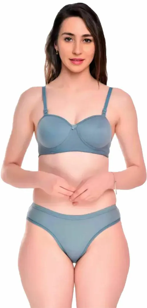 N-KUWARI Women Half cup Lightly Padded and Non Wired Bra Panty set-Blue-34B