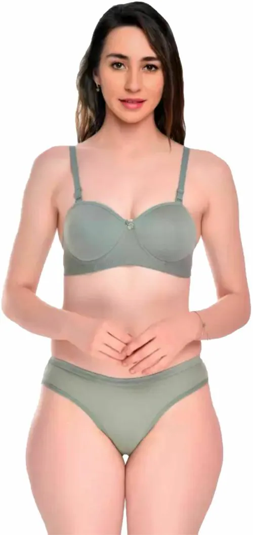 N-KUWARI Women Half cup Lightly Padded and Non Wired Bra Panty set-Green-34B