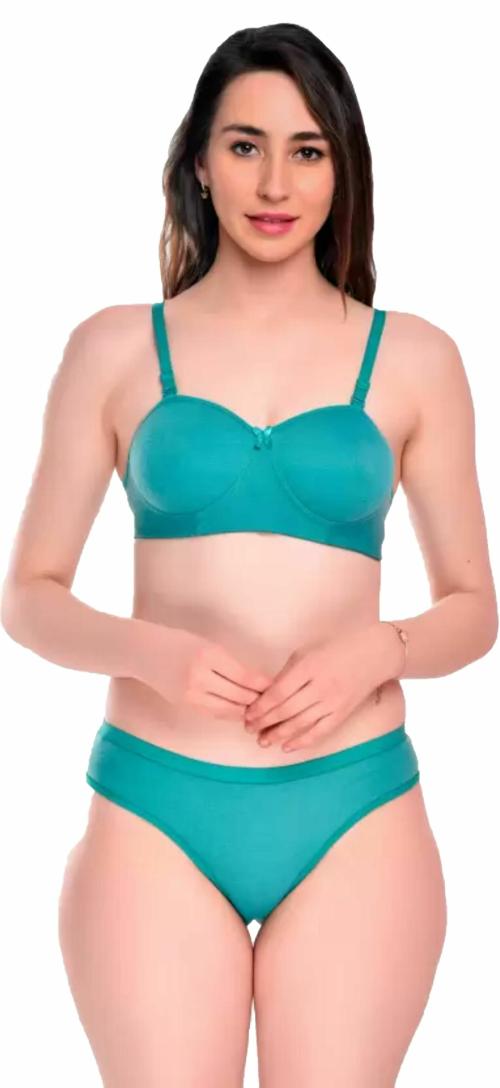 N-KUWARI Women Half cup Lightly Padded and Non Wired Bra Panty set- Green - 36B