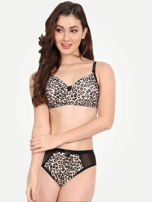 N-KUWARI Women Lycra Stretchable Tiger Print Non Wired Full Coverage Lingerie Set (30A)