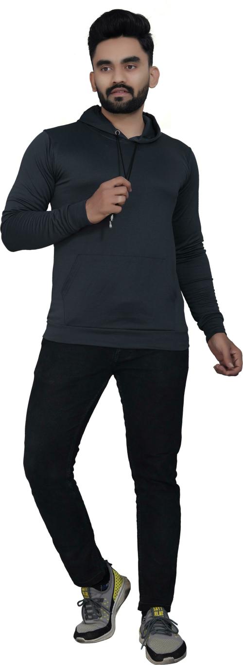 N N Enterprise Men Black Solid Cotton Blend Hooded Sweatshirt (L)