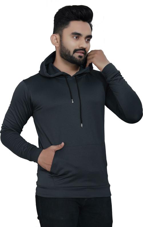 N N Enterprise Men Black Solid Wool Blend Hooded Sweatshirt (XXL)