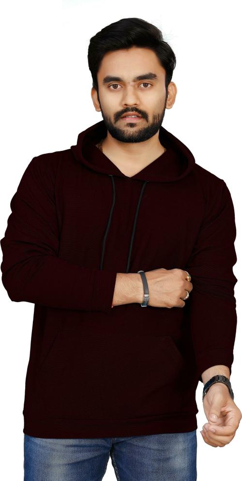 N N Enterprise Men Maroon Solid Wool Blend Hooded Sweatshirt (S)