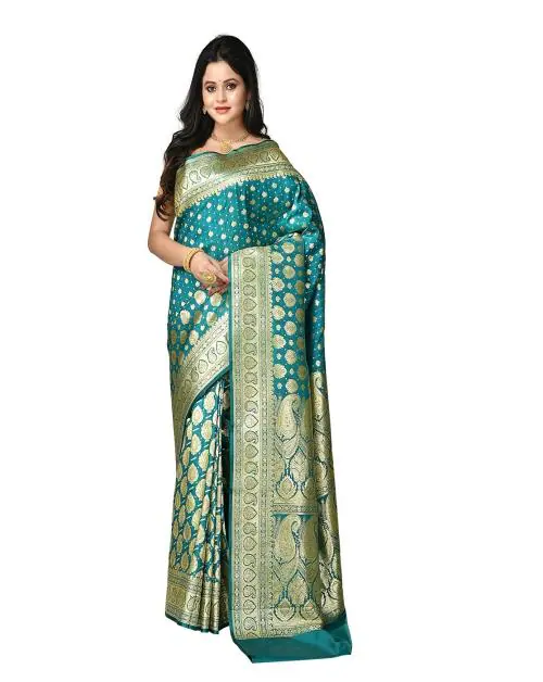 Naeusa Designer Banarasi Satin Silk Half & Half (Patli) Saree Rama Colour with Blouse for Women