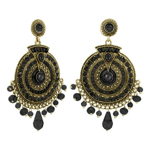 Nakabh Antique Gold-Plated Crystal Black Stone Studded Drop Earrings for Women Girls