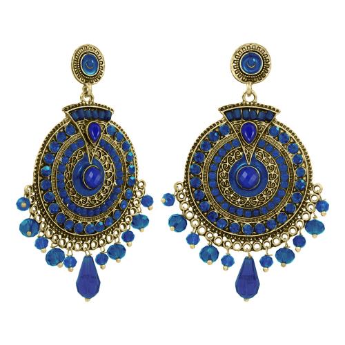 Nakabh Antique Gold-Plated Crystal Blue Stone Studded Drop Earrings for Women Girls