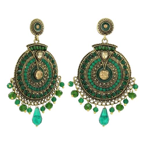 Nakabh Antique Gold-Plated Crystal Green Stone Studded Drop Earrings for Women Girls
