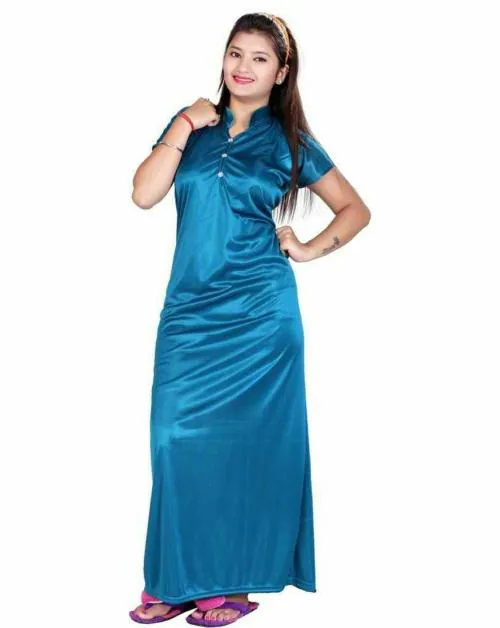 NAVYA ENTERPRISES Women Blue Satin Blend Night Dress - Free Size | Free Size Nighties | Blue Nighties | Satin Blend Nighties | Night wear | Sleep wear