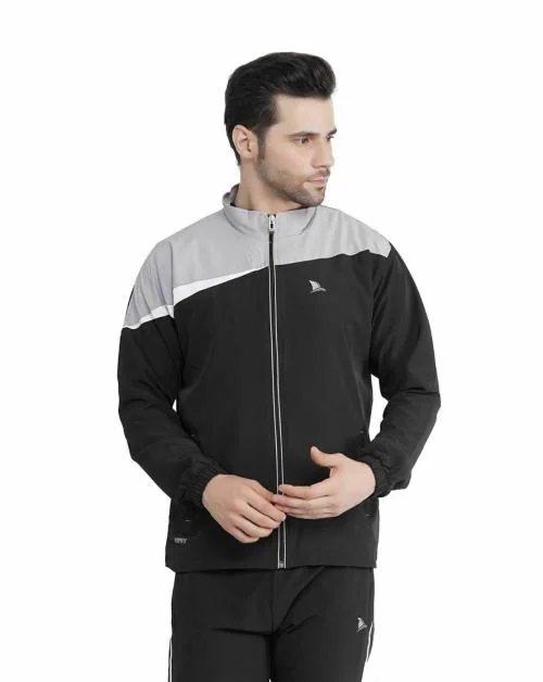 Navyfit Men Black Solid Polyester Jacket With Full Sleeve and Zipper Pockets (S)