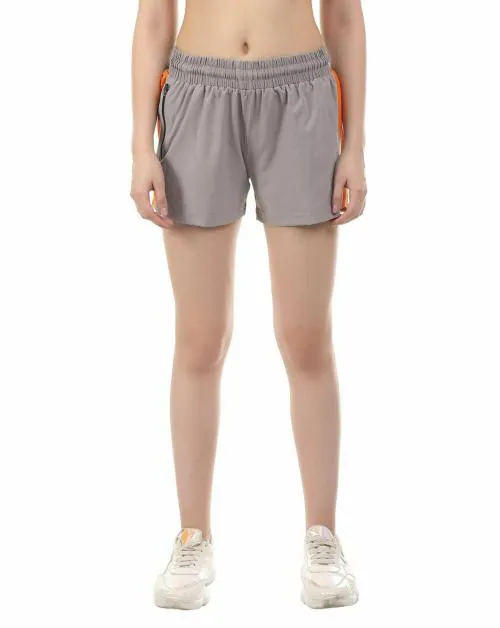 Navyfit Women Light Grey Polyester Blend Shorts With Zip Pocket (L)