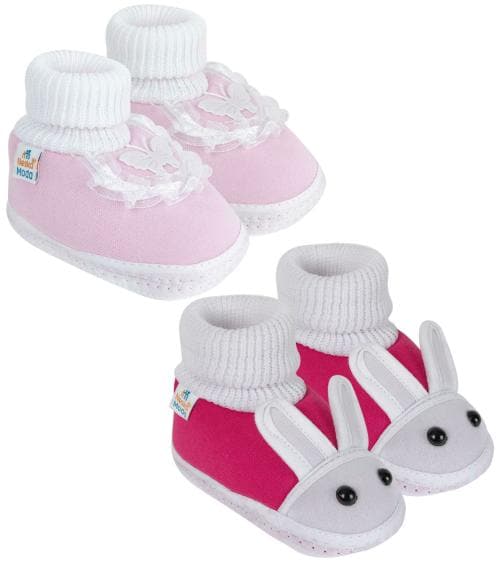 Neska Moda 3 To 6 Months Baby Girls Pack of 2 Pair Cotton Butterfly Frill and Rabit Face Booties