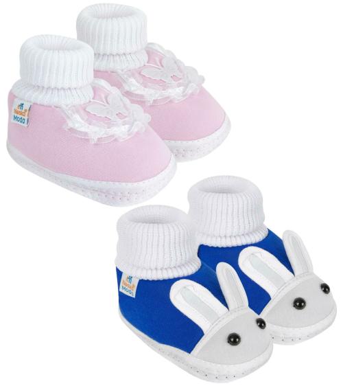 Neska Moda 3 To 6 Months Baby Girls Pack of 2 Pair Cotton Butterfly Frill and Rabit Face Booties