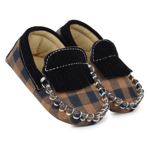 Neska Moda 6 To 9 Months Baby Boys and Girls Cotton Checkered Loafer Booties