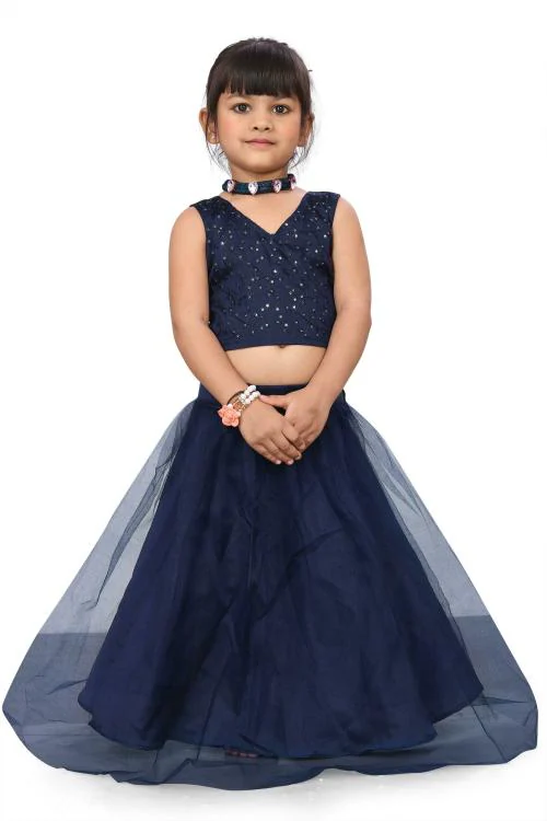 Netra Creation Blue Girls Embroidered Lehenga Choli Sets