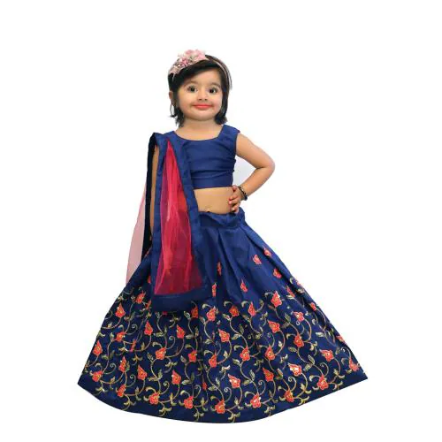 Netra Creation Blue Girls Embroidered Lehenga Choli Sets