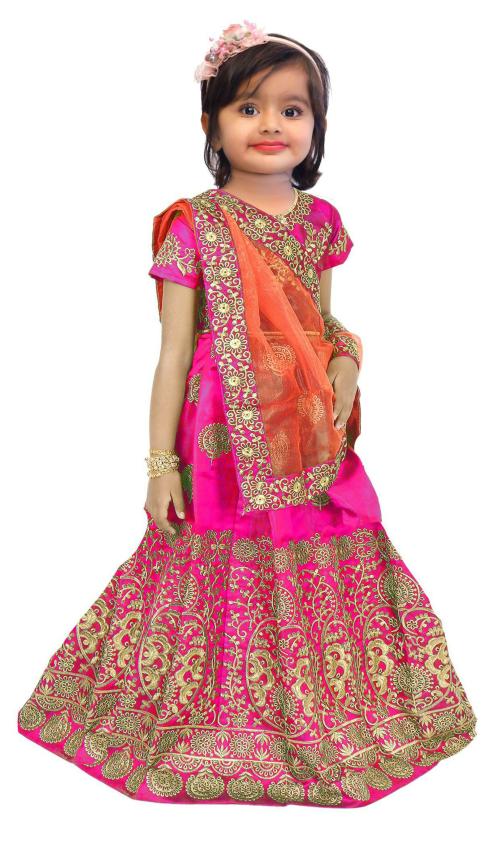 Netra Creation Girls Pink Embroidered Taffeta Semi stitched Lehenga Choli & Dupatta