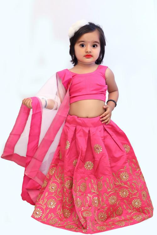 Netra Creation Pink Girls Embroidered Lehenga Choli Sets