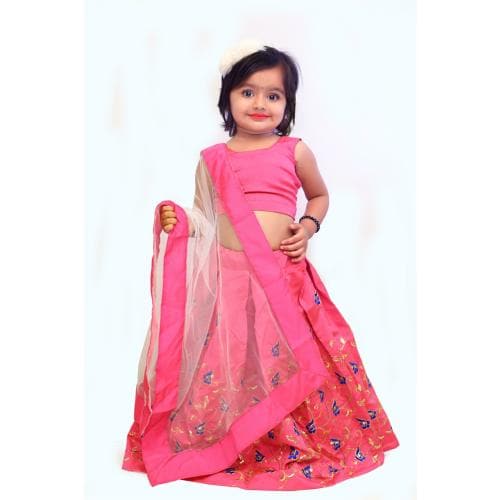 Netra Creation Pink Girls Embroidered Lehenga Choli Sets