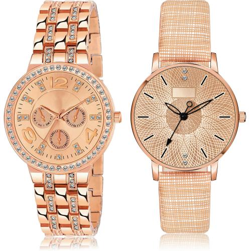 NEUTRON Brand New Gift Chronograph Chain And Girls Watch Rose Gold And Orange Colour Analog Metal And Genuine Leather Belt 2 Watch Combo For Women And Girls - G628-GM317