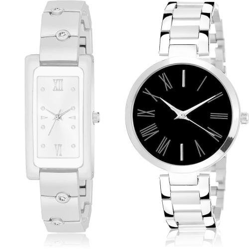 NEUTRON Modish 3D Design Chain Bracelet Diamond And Stainless Steel Silver Colour Analog Metal And Stainless Steel Belt 2 Watch Combo For Women And Girls - G567-G299