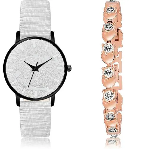 NEUTRON Treading Stylish Embossed Designer Dial And Bracelet Grey And Rose Gold Colour Analog Genuine Leather And Metal Belt 2 Watch Combo For Women And Girls - GM327-GX4