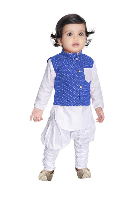 NEW GEN BOYS BLUE PRINTED 100% COTTON PACK OF 1 JACKET KURTA & PAIJAMA PANT