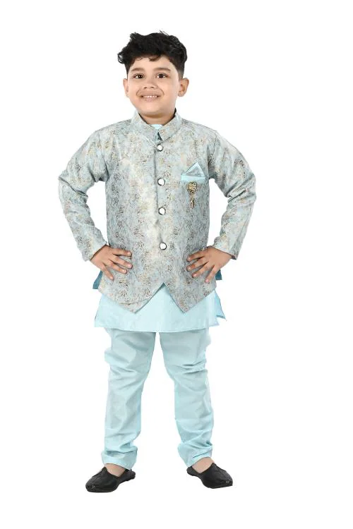 NEW GEN BOYS BLUE SILK PACK OF 1 JACKET KURTA & PAIJAMA PANT