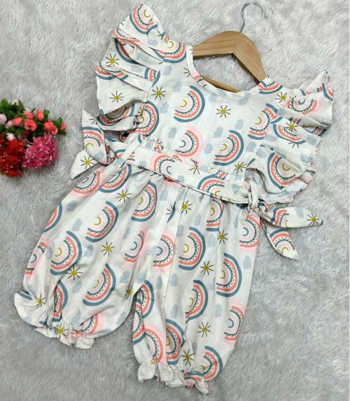 nextfield Girls Purple, White Printed Rayon Jumpsuit (5-6Y)