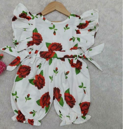 nextfield Girls Red, White Printed Rayon Jumpsuit (9-12M)