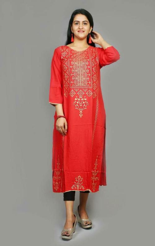 NFH Fashion Women Red Printed Viscose Rayon Straight Kurta - XL