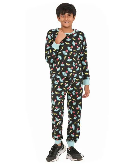 Ninos Dreams Boys Cotton Full Sleeves Coord Set with Lower Videogame Print- Black
