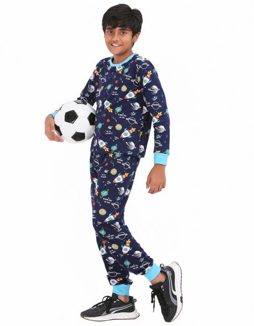 Ninos Dreams Boys Cotton Full Sleeves Coord Set with Space Theme Print-Blue