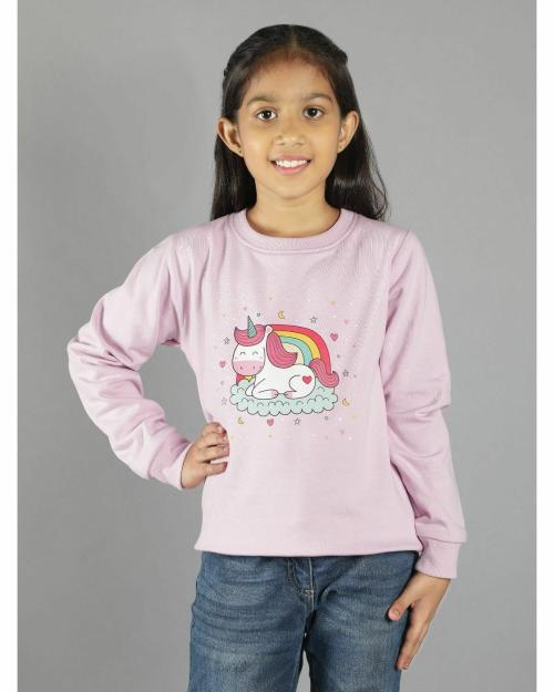 Ninos Dreams Unicorn Print Pink Full Sleeves Girls Sweatshirt-Mauve