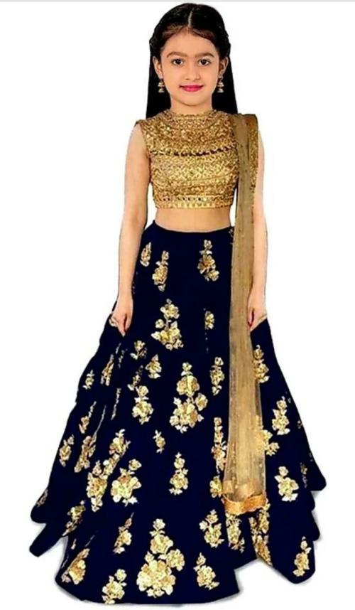 NIVUDI Girls Blue Embroidered Satin Lehenga Choli and Dupatta Set (5 to 6 Years)