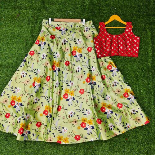 NIVUDI Girls Green Floral Print Satin Lehenga Choli (6 to 7 Years)