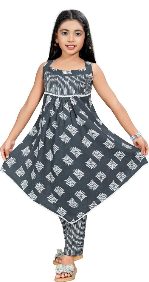 NIVUDI Girls Grey Printed Pure Cotton Kurta and Trouser Set (4 to 5 Years)