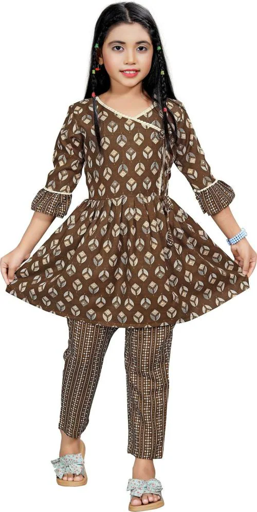 NIVUDI Girls Maroon Printed Pure Cotton Kurta and Trouser Set (10 to 11 Years)