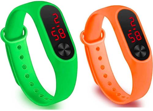 Noman Digital Black Dial Orange Strap Watch For Boys And Girls (Pack Of 2)