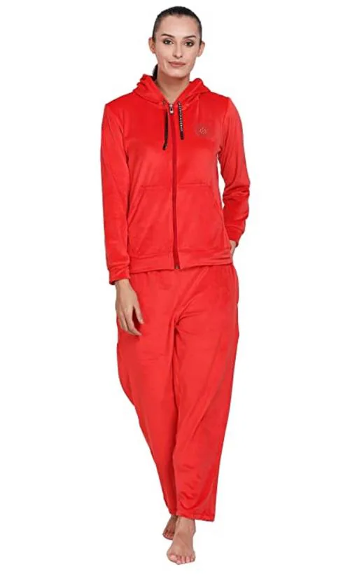 Noty- Night Suit Velvet-Hoody with Zip-2 Side Pockets-Coral (Large, Coral)