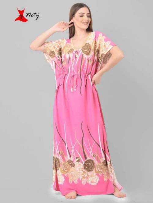 Noty Women's- Kaftan/Nighty/Maxi/Gown- Serena Fabric- V-Neck Rose Floral (Flamingo Pink, 3XL)
